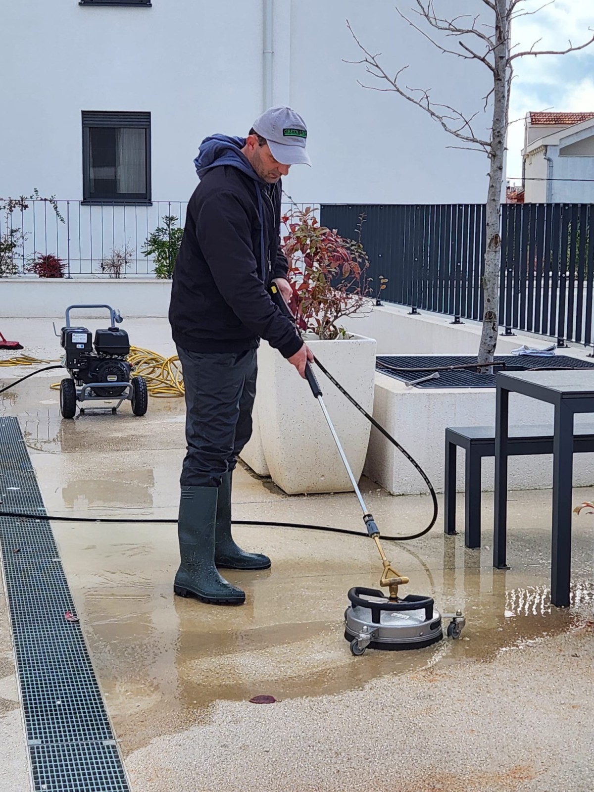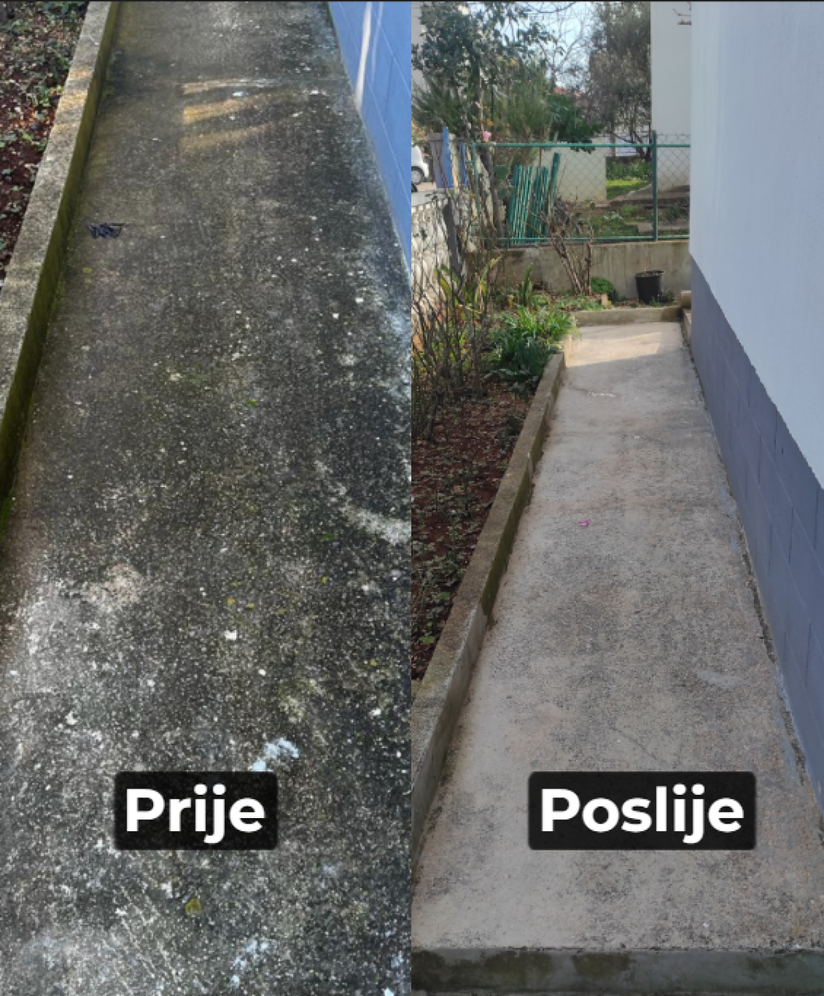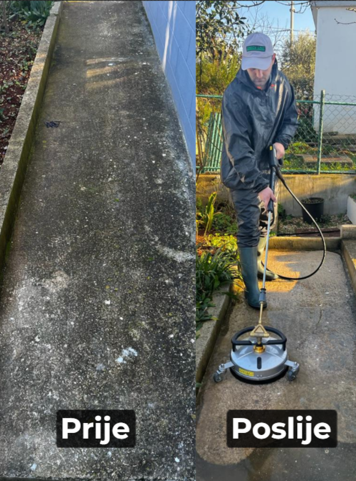 Za vanjsko čišćenje / pranje betonskih, kamenih podova (od prirodnog ili umjetnog kamena), dvorišta, okućnica, terasa, balkona, stepenica, parkinga koristimo profesionalni visokotlačni čistač koji bez napora savladava vrlo zahtjevne zadatke čišćenja.